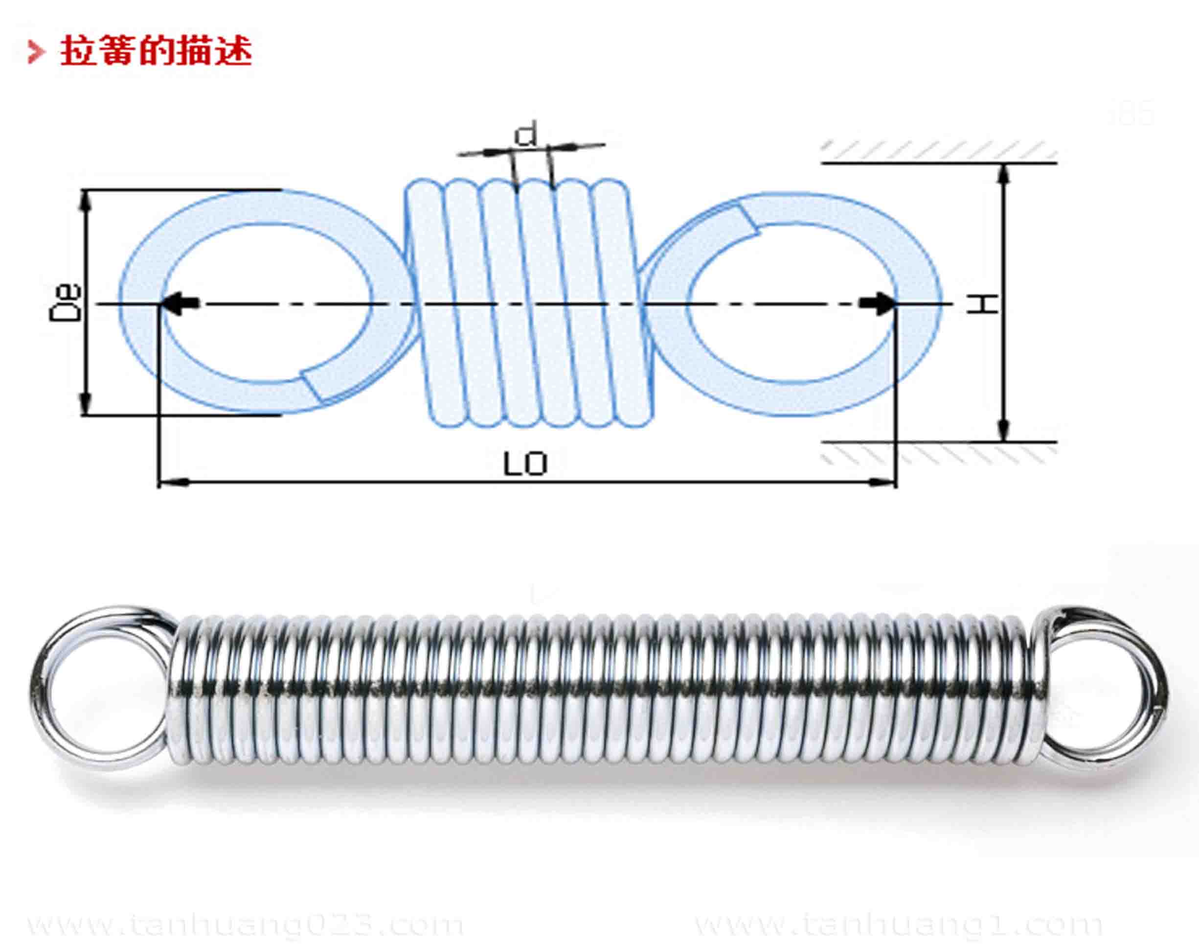 Ln (最大可拉伸長度):彈簧的最大可拉伸的長度。這也是彈簧在靜態作用下的最大拉伸長度,公差±15%。